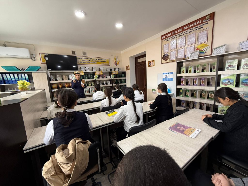 O‘zbekiston Respublikasi Prezidenti Shavkat Mirziyoyevning 2026-yil 15-yanvardagi “Kitobxonlik madaniyatini rivojlantirish va aholi o‘rtasida kitob o‘qishga qiziqishni oshirish chora-tadbirlari to‘g‘risida”gi PQ–9-son Qarori ijrosini ta’minlash maqsadida G‘ozg‘on shahar 3-umumiy o‘rta ta’lim maktabi kutubxonasida “Har haftada bir kitob mutolaa qilamiz” loyihasi doirasida kitob taqdimoti tashkil etildi.