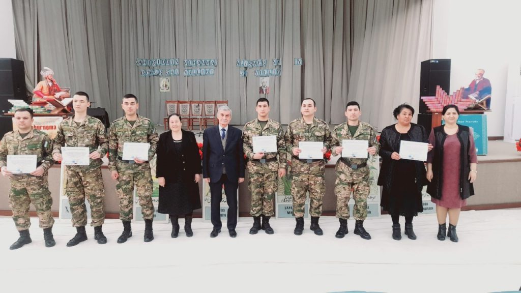 Tadbir Karmana tumani 5-umumiy o‘rta ta’lim maktab o‘quvchilari tomonidan Husayn Boyqoro va Navoiyni “Uch yomon odam ta’rifi” va 523-SCHRB askarlari tomonidan Pirimqul Qodirovning “Yulduzli tunlar” asaridan sahna ko‘rinishini ijro etishdi.